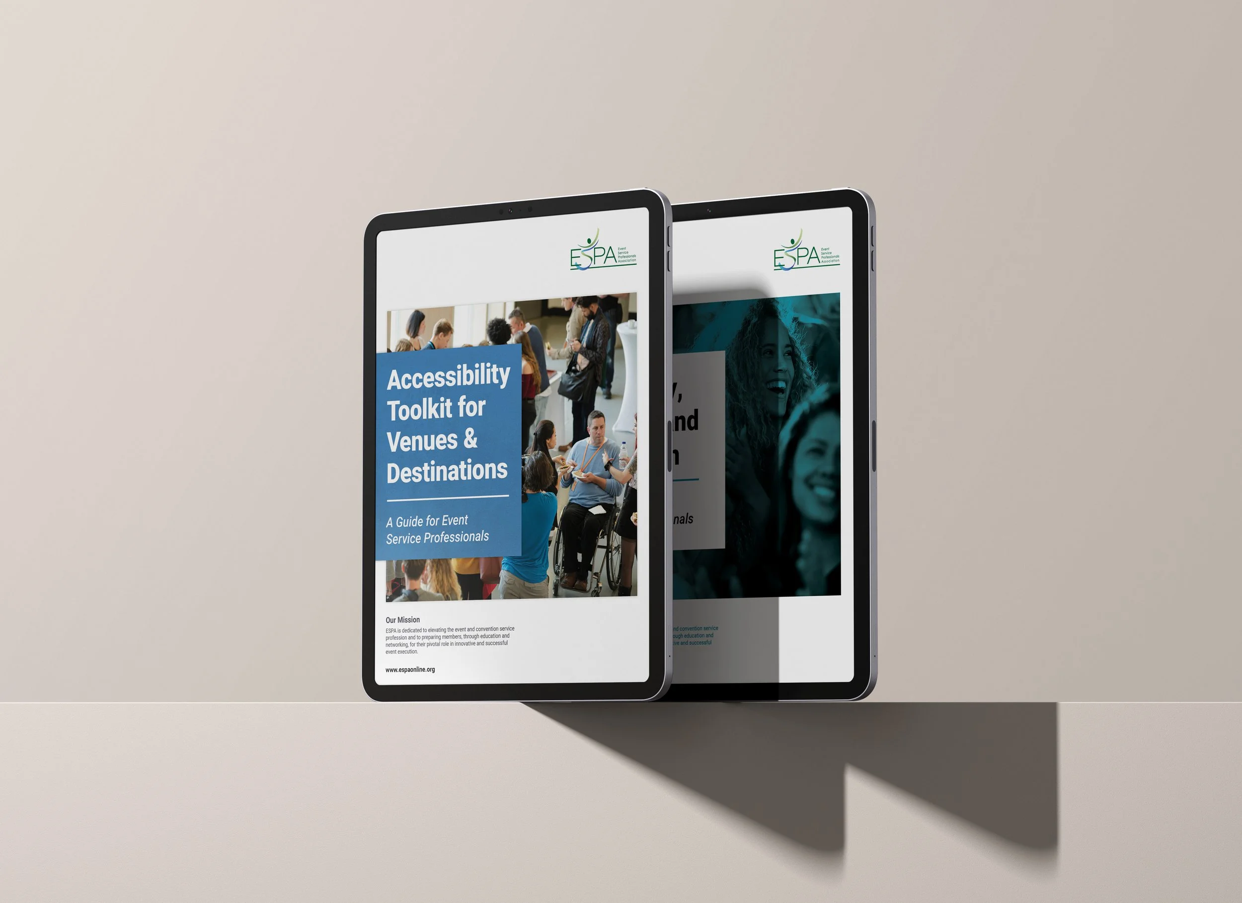 To support its mission of fostering more inclusive and accessible events, ESPA developed two digital DEIA guides designed to educate industry professionals while embodying the principles of accessibility in both content and design. From vision-friendly color palettes to custom iconography and clear typography, every element was crafted to ensure usability, clarity, and impact.
