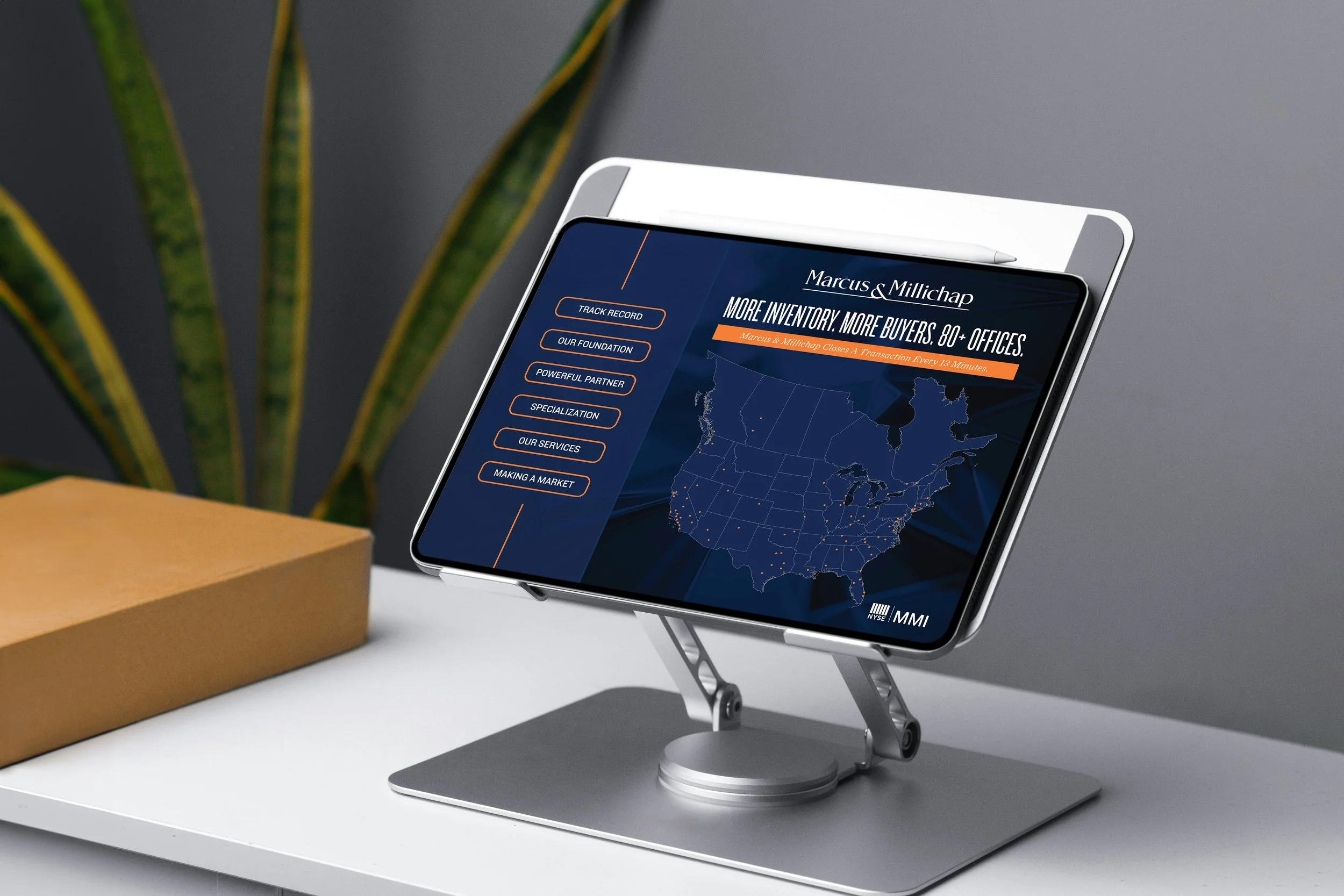 To modernize brand communications and support its national sales force, Marcus & Millichap launched two key initiatives: an interactive Digital Company Overview designed to streamline sales conversations and unify collateral, and a visual identity refresh for Marcus & Millichap Capital Corporation (MMCC), featuring refined typography, bold imagery, and a distinctive color palette to set it apart while aligning with the broader brand ecosystem.